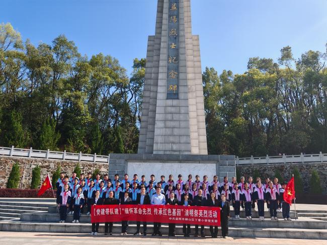 该校党支部委员胡兴宇领学了烈士黄克佐的事迹,学生们从中体会到了烈士们无上的智慧和勇气,认识到了自己肩负的责任与担当。随后,大家列队整齐瞻仰烈士陵墓,并敬献鲜花以寄哀思。