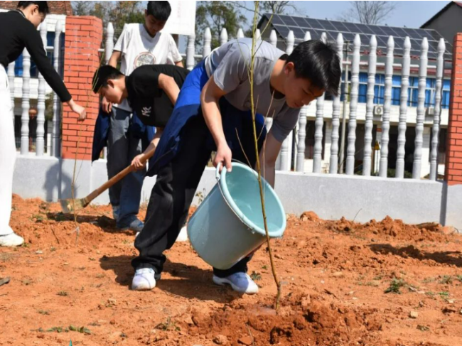 3月12日,沧水铺镇芙蓉学校组织开展“‘植’此青绿 彩绘芙蓉”植树节活动。全校师生分工合作,挖坑、扶树苗、浇水,一同为校园添绿。