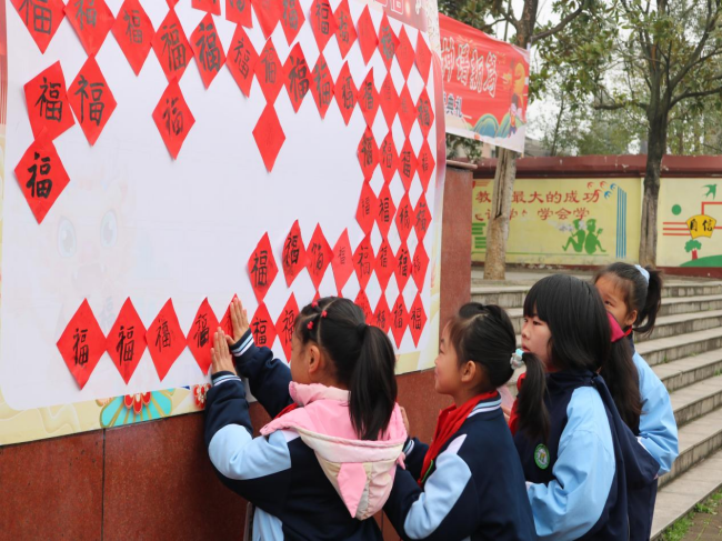 在“出彩学子送‘福’字,出彩教师写‘福’字”环节,一百位师生撰写“福”字,汇成龙年百福图,表达了对美好生活的祝愿。1905、1906班带来的陶笛演奏《龙的传人》将典礼推向高潮,激发了师生的民族自豪感,体现了孩子们对中华优秀传统文化的热爱。