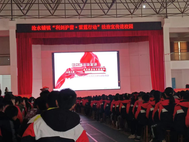 为增强师生法治观念和安全意识,提高未成年人自我保护能力,维护未成年人合法权益,3月1日,“利剑护蕾 雷霆行动”法治宣传进校园主题活动在沧水铺镇花亭子开展。