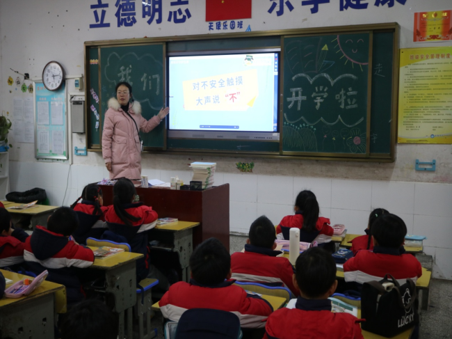 课堂上,学生们回顾寒假生活,分享寒假趣事,班主任教师结合学校安全管理平台相关视频,通过齐读、提问互动等方式,详细介绍了预防性侵、交通安全、禁毒教育等知识,引导学生提高自我保护能力,增强安全防范意识,教育学生养成良好学习生活习惯,以饱满的热情、积极的心态、健康的身体投入到新学期的学习和生活中。