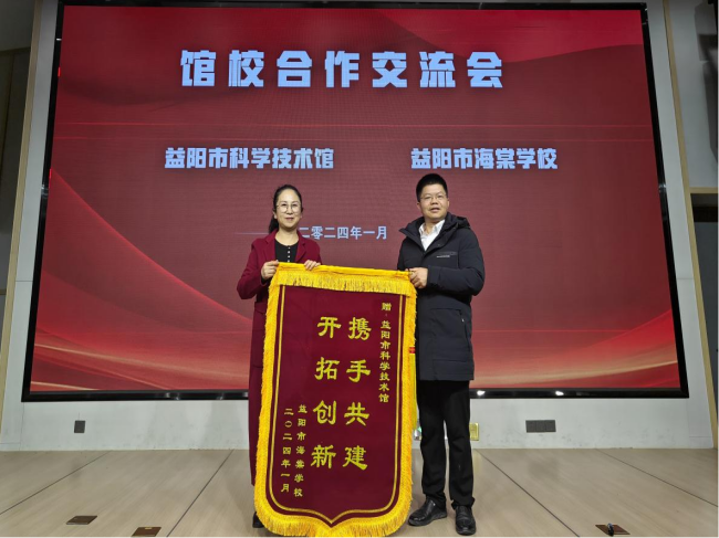 据悉,这是自该校“馆校合作”以来的又一次深入交流,双方就课程建设、师资共享等方面达成共识。市科技馆馆长罗赛峰表示将全力支持学校科学教育工作。海棠学校校长贾谷丰代表学校对市科技馆提供的高质量科普资源和热心服务表示感谢,并赠送印有“携手共建、开拓创新”字样的锦旗,象征双方将继续在科学教育的道路上密切合作,共同进步。