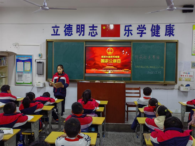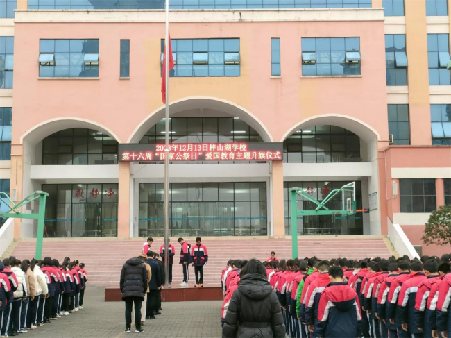 上午8时,升国旗、下半旗仪式举行,该校师生集体下默哀1分钟。学生代表在国旗下以《铭记历史奋发图强》为题进行演讲,立志要好好学习文化知识,传承红色基因,努力成为德、智、体、美、劳全面发展的社会主义建设者和接班人。班会课中,学生通过观看宣教PPT和视频,回顾了那段屈辱的历史,了解了设立“南京大屠杀死难者国家公祭日”的历程、意义及其对中国和世界产生的深远影响。学校以“德育六个一”为爱国主义宣教载体,引导学生们走进艰苦奋斗、献身祖国的英烈内心世界,在一封封家书中感受那“不负祖国不负卿”的执着。