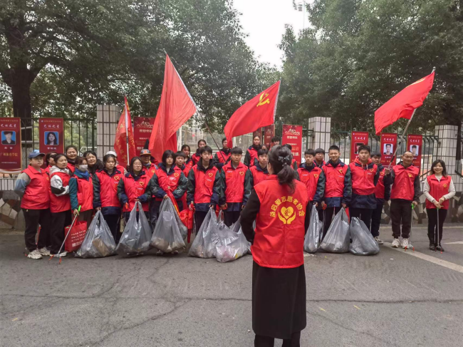 志愿者们身着红色马甲,手持劳动工具在指定区域沿途捡跑宣传,清理街道垃圾,维护交通秩序,引导市民文明出行,倡导社会文明新风,弘扬社会正能量,助力城市文明建设。