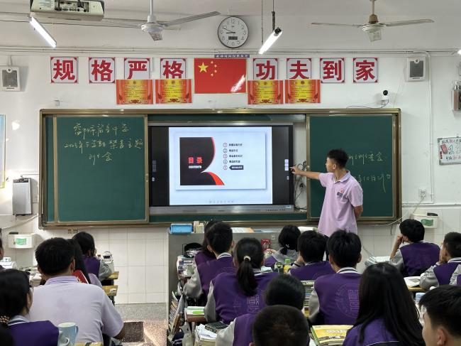 该校学生处主任李源以“珍爱生命,远离毒品”为主题作国旗下讲话,他带领全体箴言学子回忆了中华民族被毒品侵害的屈辱过往,谈到了青少年吸毒现状,讲解了毒品种类和危害、日常用药安全、青少年如何防范毒品等,发出了“抗毒、防毒、禁毒”的倡议。高二年级组织开展禁毒主题班会课,各班团支书作为主讲人,详细讲解了禁毒相关知识并组织大家观看戒毒所相关影片,视频里戒毒人员的现身说法,让大家对毒品有了更直观的认识,对毒品危害有了更深入的体会。观影后,学生们相互交流,纷纷表达了拒毒、禁毒的决心。