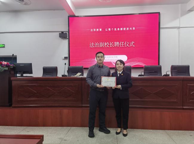 为做好少年法治宣传教育工作,营造平安校园氛围,衡龙桥镇学校开展“法治副校长”聘任仪式暨法治教育进校园活动。