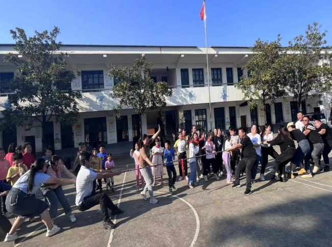 运动会上,学生与家长一起完成了多个体育项目。家长拔河比赛更是将活动推向了高潮,操场上加油呐喊声此起彼伏。