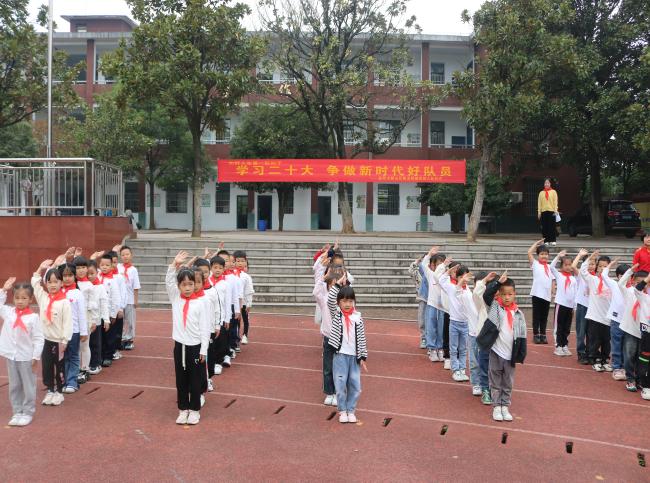 10月12日,衡龙桥镇学校举行“学习二十大、争做好队员”少先队员入队仪式,该校一、二年级共255名学生加入中国少年先锋队。