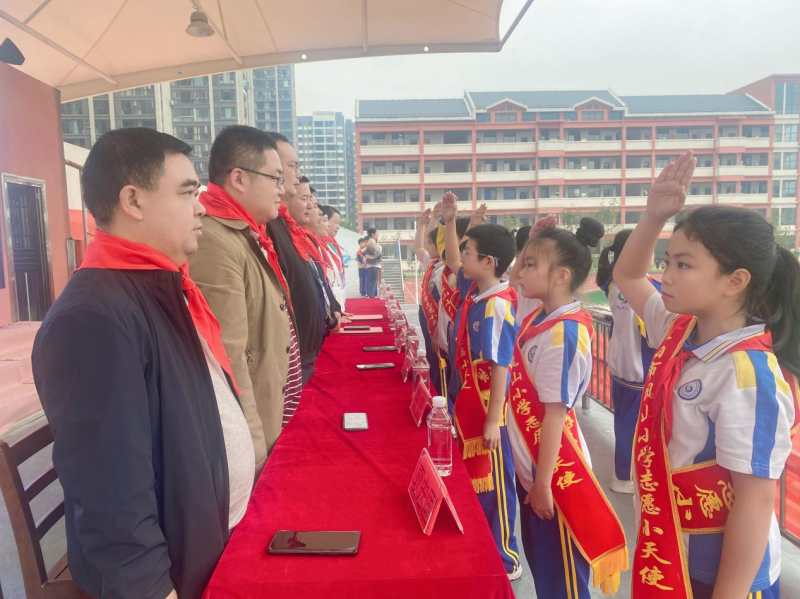 仪式现场,3名少先队旗手护卫着队旗,庄严进场。全体队员齐唱《中国少年先锋队队歌》,在振奋人心的歌声中,该校行政人员、中队辅导员和老队员们一起为338名新队员佩戴象征着传承和希望的红领巾。新队员们庄重举起右拳,在学生代表的带领下,庄严宣誓。大队会上还举行了一星章颁章仪式,表彰了一批表现突出、品学兼优的少先队员。