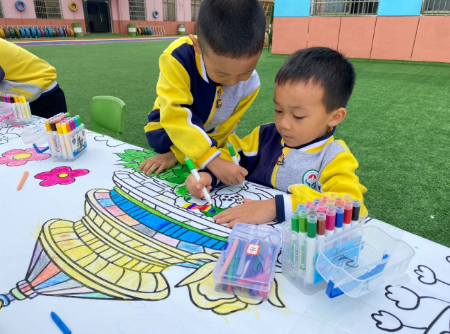 9月25日,欧江岔镇中心幼儿园开展“我们的快乐时光”主题创作活动,活动包含绘百米长卷和亲子制灯笼两个环节。