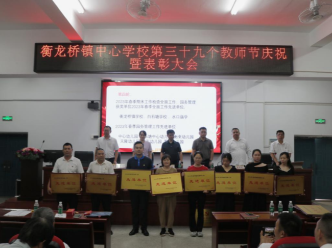 9月10日,衡龙桥镇中心学校举行庆祝第39个教师节大会。会议重温了教师誓词,回顾了过去一年来该镇教育工作取得的各项成绩,表彰了一批优秀教师和先进单位。