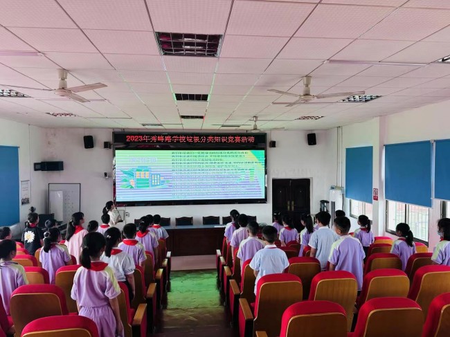 “我们承诺一定把身边的垃圾分类扔进垃圾箱;我们承诺爱惜粮食,不随意倒剩余饭菜汤汁;我们承诺进行废旧电池回收;我们承诺......”5月19日,秀峰路学校“共建文明”垃圾分类知识竞赛活动在集体宣誓中落下帷幕。