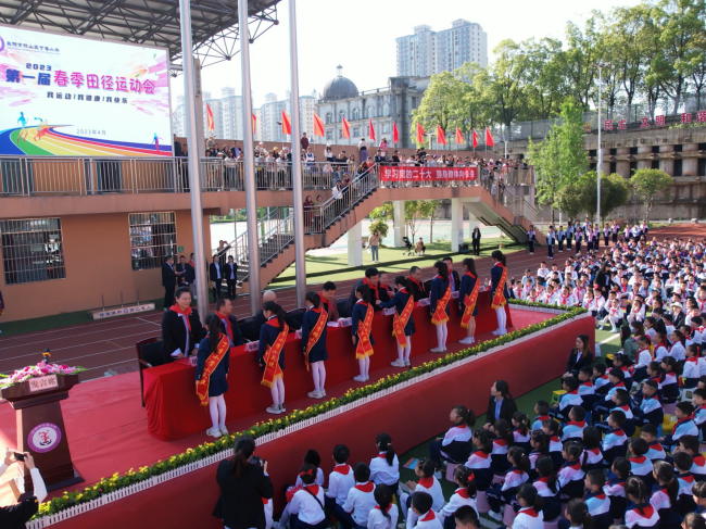 4月26日,丁香小学以“学习党的二十大 强身健体向未来”为主题的首届校园田径运动会开幕,该校2800余名师生及部分家长代表参加,区教育局相关领导受邀出席。