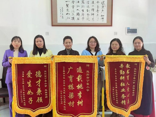 3月9日下午,赫山区丁香小学2104班部分学生家长满怀感激之情前往该校,将书有“德才兼顾,爱生如子”和“教书育人爱心存,辛勤耕耘业务精”的锦旗赠给王英和夏琦荟两位老师,以此感谢两位老师对孩子们无微不至的关怀和谆谆教导。