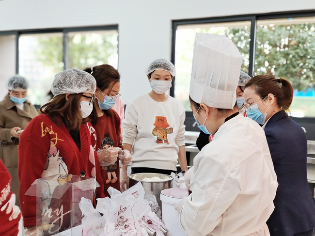 活动中,烘焙师详细讲解蛋糕制作流程和裱花技术,现场为大家示范,女教师们也自己动手体验,忙得不亦乐乎,现场香气四溢,弥漫着快乐和幸福的味道。“第一次体验做烘焙,大家都很兴奋。”学校工会主席潘革新表示,此次活动丰富了女职工的文化生活,增进了感情友谊,激发了工作热情,也为今后组织学生学习烘焙打下了基础。