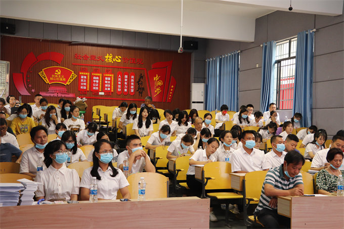 会上,副校长熊刚对全体教职工表达了衷心祝福,热烈欢迎年轻教师的到来。随后,他带领全体教师学习了《2022年赫山区师德师风建设工作实施方案》和《全省基础教育领域违法违纪典型案例警示录(第二辑)》。他号召大家进一步坚定信念,坚守初心使命,加强政治理论学习,用心做好本职工作。工会主席陈龙部署安排了开学前后疫情防控工作,要求全体教职工密切关注全国疫情走势,做好自我健康监测和科学防护,严格落实疫情防控要求。副校长盛华对后勤工作作周密安排,全力做好师生新学期各项服务保障工作。