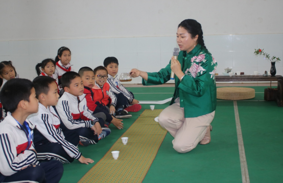 “哇!好好喝!”“黑茶,我们益阳神奇的‘树叶’!”梓山湖学校的茶艺社团课堂里,学生们接连发出阵阵惊叹。益阳黑茶十大风云人物、高级茶艺师宋喜梅老师在给学生们上茶艺教育课。授课中,她充分发挥孩子们的主观能动性,从坐姿形体、礼貌礼节、茶具摆放到冲泡奉茶示范并指导孩子们逐步练习操作。伴随着优美地古筝乐曲,宋老师专注优雅地讲解示范,孩子们在轻松愉快地氛围中享受到茶艺学习的快乐和魅力。