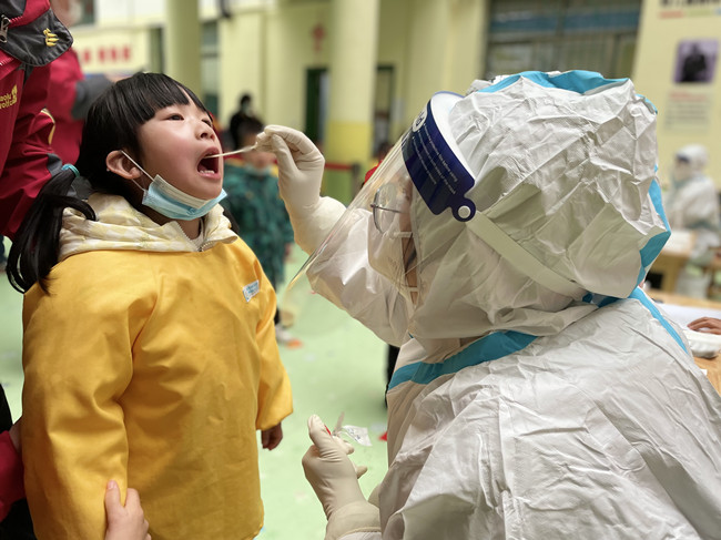 “嗨,大白,我爱你!”“大白,谢谢你!”3月25日,龙洲幼儿园组织师幼和园内住户开展全员核酸检测工作。在检测现场,小朋友们用童真的话语表达对医务人员的感谢。