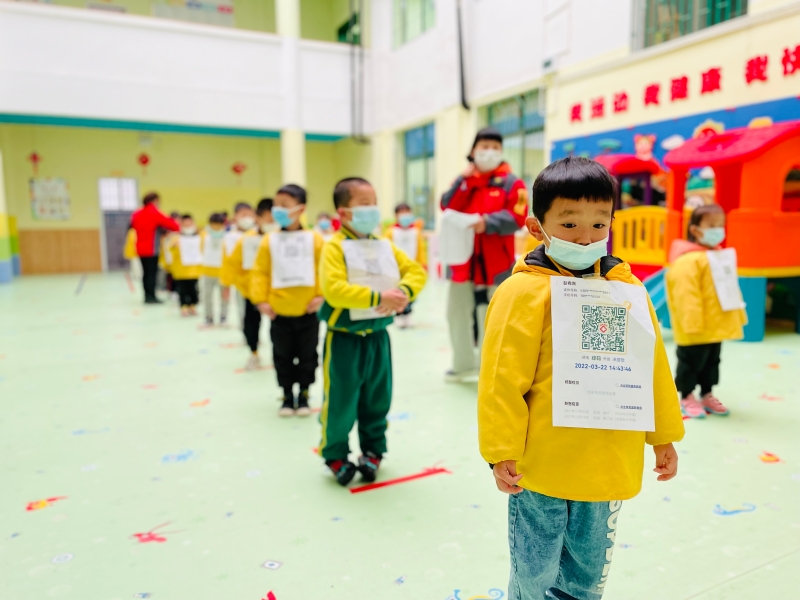 据悉,本次检测对象包括园内住户、幼儿、全体教师以及安保、食堂工作人员、保健医生等重点人群,共计416人,做到全员覆盖。检测结束后,该园大三班的孩子们再次对医护人员表示感谢,约定等到疫情退散,天气晴朗时,大家再一起相聚幼儿园。