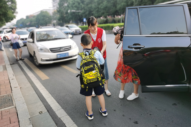 新学期伊始,丁香小学制定护学岗工作方案和活动倡议书,发动班主任积极向家长宣传并鼓励家长报名。9月中旬,家长们穿上志愿者红马甲,分列在校门口和马路边,疏导校门口路段的人流和车流,帮助孩子开车门、提书包,抱孩子下电瓶车,引导孩子们过马路,协助值日教师、保安共同维持秩序。