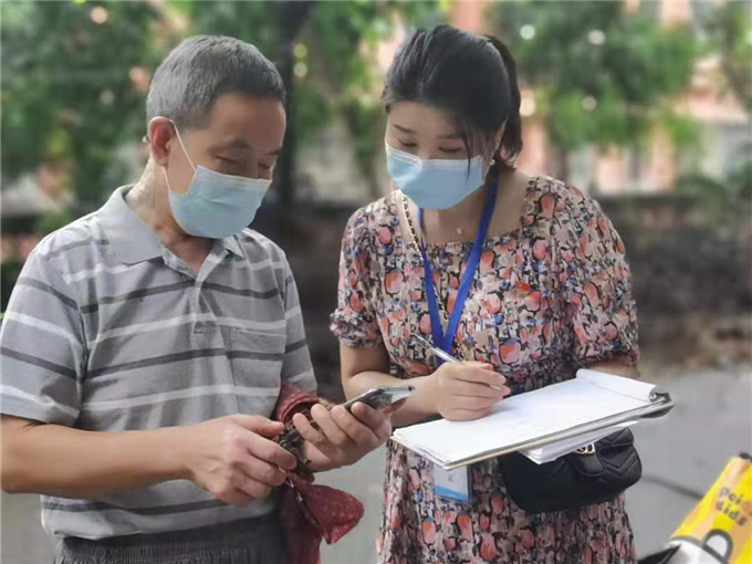 “您好,我是桃花仑小学的抗疫志愿者,根据疫情防控要求,您的健康码、行程卡,核酸检测结果和接种疫苗情况能出示一下吗?”在龙洲路社区,该校校长张学文带领志愿者队伍负责上门入户摸排工作。敲门、询问、解释、核对、登记……连续10多个小时的摸排工作,汗水湿透了他们的衣衫,笑容却洋溢在他们的脸上。同时,由副校长姚劲夫带领桃花仑社区志愿者队伍正在认真录入核酸检测信息。他们目不转睛地注视着屏幕,耐心地与市民沟通,键盘鼠标的敲击声此起彼伏……8月12日截止,该校志愿者协同两个社区的工作人员圆满完成了入户摸排和信息录入的工作任务。