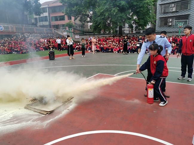 安全疏散演练结束后,省全民消防知识宣传中心教官陈武赞对全体师生进行消防安全知识宣讲。在学习灭火器正确使用方法后,师生代表现场实操演练,进行灭火演示。