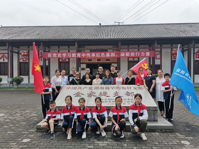 5月11日下午,梓山苑小学党支部组织全体党员教师前往湖南省最早的农村党支部——金家堤支部旧址开展党史学习教育,缅怀革命先烈。