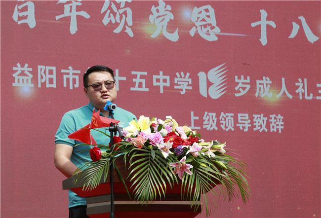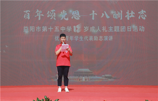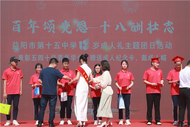 红日初升,其道大光;成年已至,其帆远扬。5月5日下午,益阳市第十五中学举办“百年颂党恩 十八酬壮志”成人礼活动,激励学生勇担时代使命,做爱国爱党的有志青年。共青团赫山区委副书记喻哲丹,区教育团工委书记赵曲才、副书记蔡建华,该校全体师生及部分家长共1300余人参加活动。