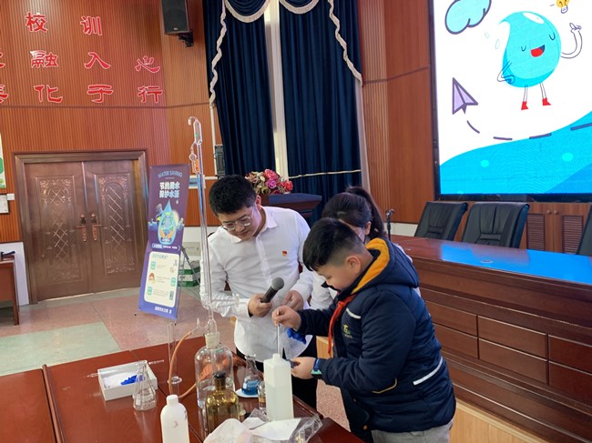活动现场,志愿者简要介绍了全球淡水资源利用现状和益阳市境内水系分布情况,并用采样来的水进行了一次水质分析实验,让学生明白普普通通的一滴水也含有丰富矿物质成分。随后,通过节水宣传彩页、普法动漫宣传片、节水知识有奖问答、现场答疑等形式,学子们获得了丰富的水知识,增强了节水意识。大家纷纷将写有自己名字的“小水滴”投进“水瓶”中,承诺带头科学用水、自觉节水,做保护水环境的小天使。