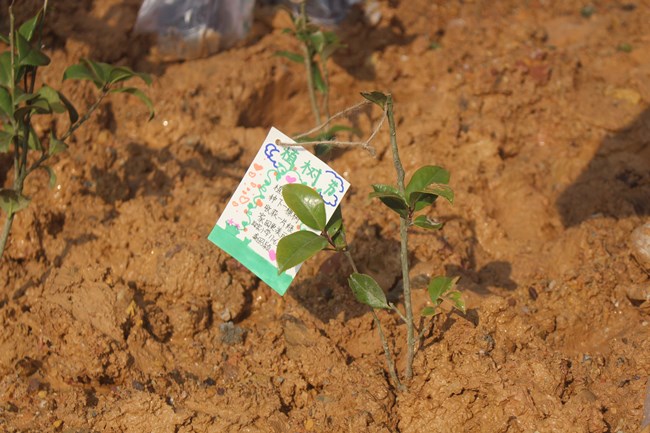 久违的晴天,地面泥泞虽未全干,大家植树造绿的热情却丝毫未减。志愿者们挥锹铲土、扶苗填土,分工协作,干劲十足,现场一片繁忙。尽管泥土沾满衣鞋,大家仍然坚持完成道道工序,整个植树活动井然有序。最后,少先队员们将亲手制作的心愿卡挂在刚种的绿苗上以示纪念。