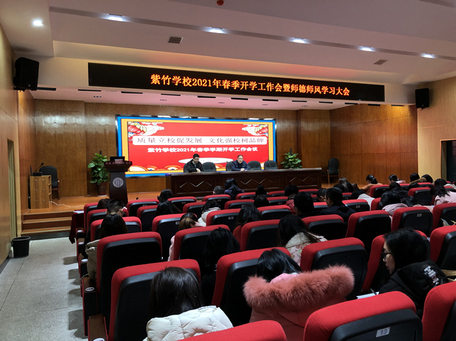 金牛开泰取胜景,春风浩荡展宏图。为扎实做好新学期开学准备工作,全力推进学校工作再上新台阶,2月25日,紫竹学校召开2021年春季学期开学工作会议。