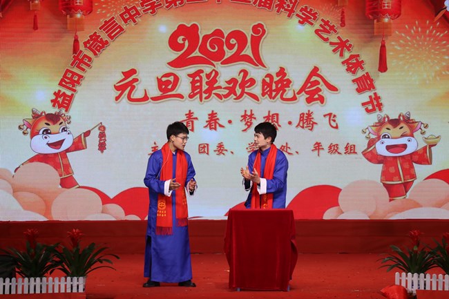 为庆祝元旦佳节,喜迎2021年的到来,12月30日,箴言中学2021年元旦文艺晚会在该校体育馆隆重举行。晚会以“青春•梦想•腾飞”为主题,师生同台尽情演绎青春、放飞梦想、助力腾飞。赫山区教育局领导、学校全体行政及近2000名师生、家长代表欢聚一堂,共迎新年。