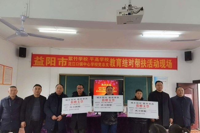 最后,紫竹学校、平高学校向泥江口镇大坝塘学校、蛇山学校、先锋学校进行现场捐赠。区教育局基教股股长徐秋平高度肯定了本次城乡结对教学交流活动,他希望各学校提高认识,积极行动,真学实干,助推城乡教育均衡发展。