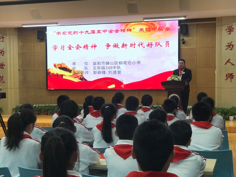 为深入学习宣传党的十九届五中全会精神,12月1日,由赫山区团委和赫山区教育局主办、桃花仑小学承办的“学习十九届五中全会精神,争做新时代好队员”主题中队观摩活动在桃花仑小学多功能报告厅如期举行。