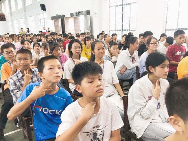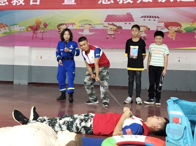 活动中,蓝天救援队工作人员用通俗易懂的语言介绍了疫情防控、下水救援和心肺复苏等急救知识,强调急救要抓住黄金4分钟,并利用模拟人型,手把手耐心指导师生进行体验性操作。工作人员的讲解生动直观,深入浅出,在场师生看得仔细,听得认真,积极互动,每次操作成功后大家都报以热烈的掌声。