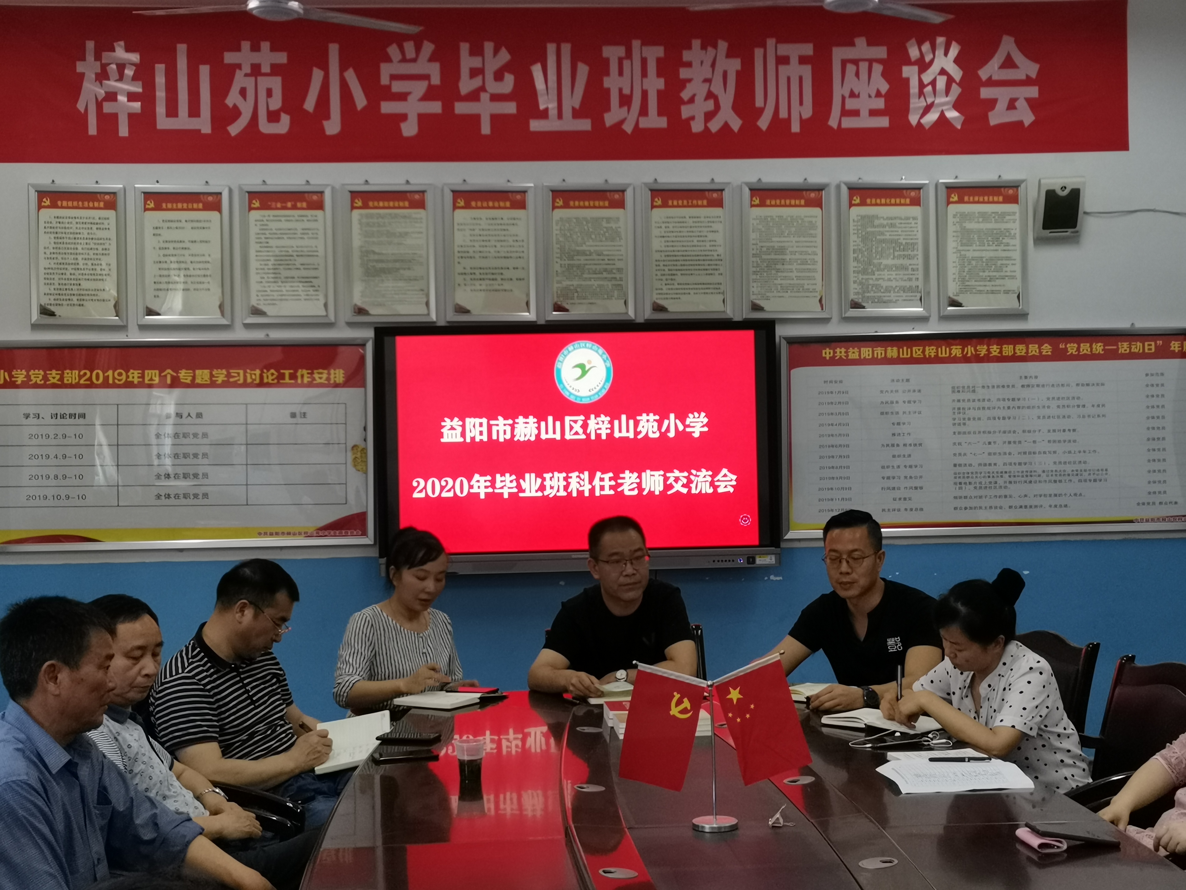 栀子花开半夏,香气四溢校园。5月23日中午,梓山苑小学在学校会议室举行2020年毕业班任课教师座谈会,该校全体行政人员和毕业班任课教师参加会议。