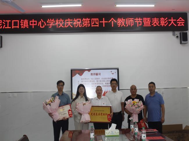 9月10日上午,第40个教师节到来之际,赫山区泥江口镇中心学校在工农学校召开教师节庆祝大会,泥江口镇党委、政府负责人为曾新建等5名优秀教师和工农学校等先进单位颁奖。