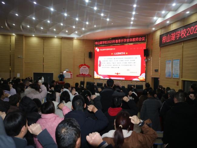 为推动新学期各项工作有序开展,2月11日,湖南城市学院附属梓山湖学校召开2025年寒假政治、业务学习暨春季开学工作全体教师大会。