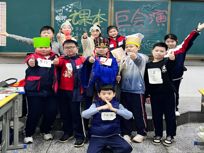 诸葛亮、鲁肃、周瑜、武松、孙悟空……3月12日,当这一连串人们耳熟能详的“人物”,出现在湖南城市学院附属梓山湖学校班级舞台上时,现场响起了经久不息的掌声。当日语文课上,该校五年级2013班举办“课本巨会演”课本剧大赛,学生们以饱满的情感、极具感染力的表演和默契的配合将课本中的人物和故事精彩演绎,彰显了他们的才华和激情,展现了中华经典文学的魅力。