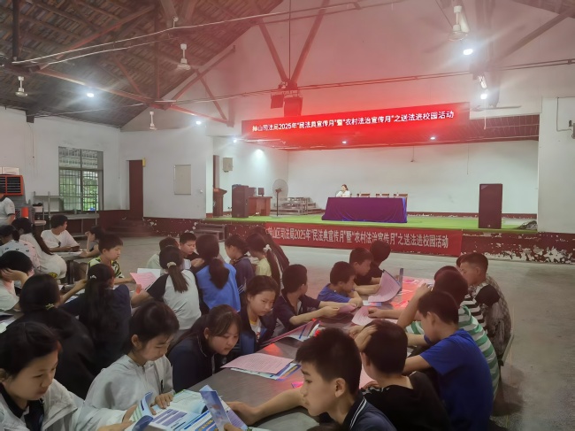 活动以习近平法治思想为指导,结合民法典重点内容,围绕防溺水、防性侵、反诈骗及反校园霸凌等青少年常见安全问题,通过案例分析、互动问答等形式普及法律知识。讲师团针对“遭遇校园欺凌如何取证”“性侵害求助流程”等实际问题展开讲解,引发学生热烈讨论。现场设置法治展板及法律咨询台,司法工作人员为师生答疑解惑,并发放《民法典学习宣传资料》《中华人民共和国宪法》等宣传资料2000余份。