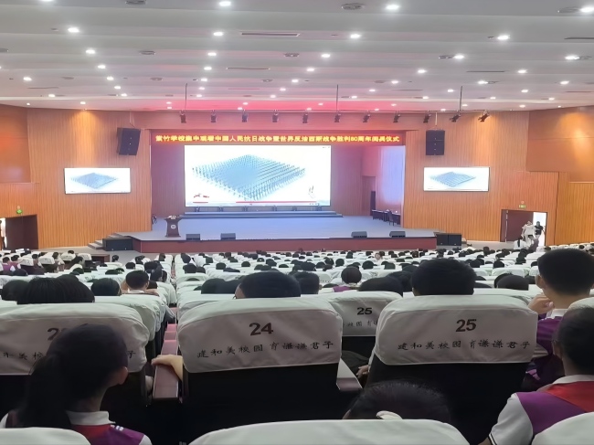 9月3日,紫竹学校组织全体师生观看“纪念中国人民抗日战争暨世界反法西斯战争胜利80周年阅兵式”直播,引导师生铭记历史、致敬英雄、砥砺前行。