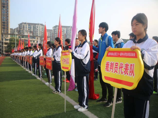 开幕式上,伴随着雄壮的国歌声,五星红旗冉冉升起。各代表方阵整齐列队、精神抖擞,展现出勇争第一、奋进一流的精神风貌。区教育局党组成员、总督学段敏致开幕辞,勉励各代表队以更积极的态度和更饱满的热情投入比赛,推进校园阳光体育活动和专业竞技体育同频共振,实现运动成绩和精神文明的“双丰收”。运动员代表、裁判员代表相继宣誓,表示坚决遵守赛场纪律,坚决维护比赛规则,确保公平公正。随后,区教育局党组书记、局长张伐宣布运动会正式开幕。
