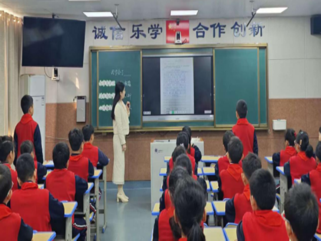 考察团首先观摩了该校骨干教师唐红艳的作文课《我学会了____》。唐老师围绕“叙事有条理、过程有细节、心情有变化”展开教学,展现扎实语文教学水平。随后,考察团观看了大课间活动,学生们精神饱满、队列整齐,充分体现了学校素质教育成果。