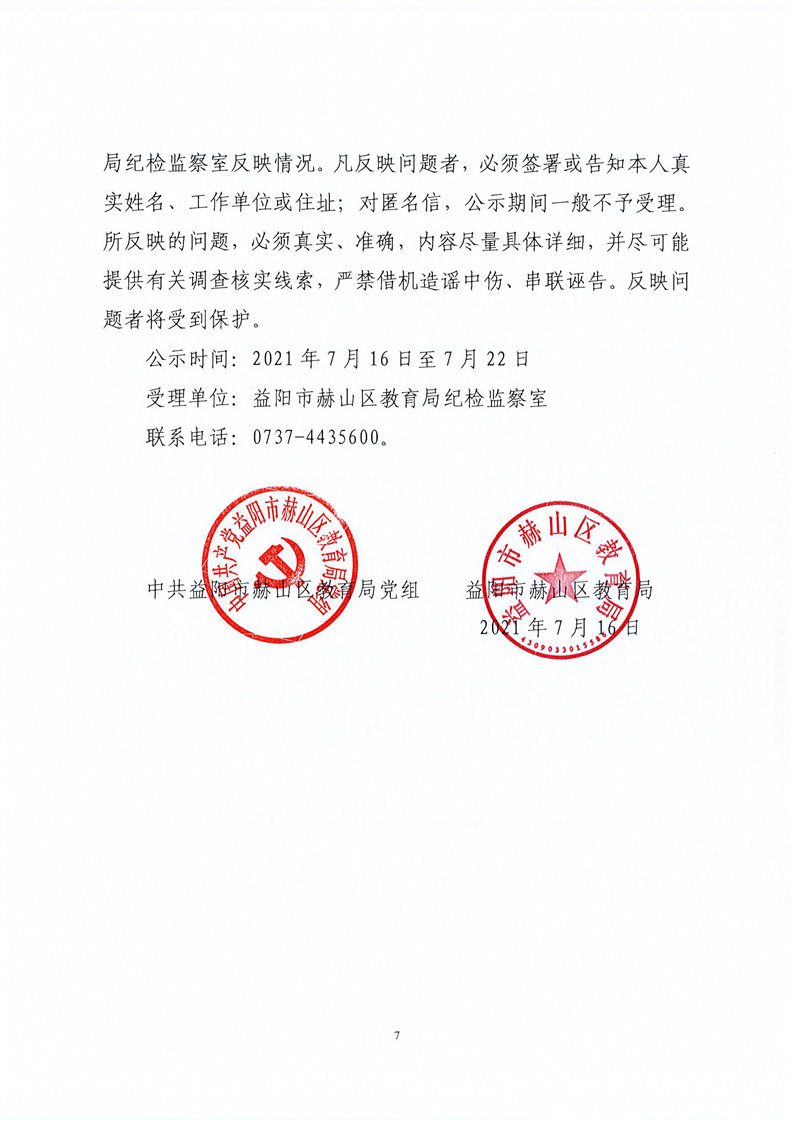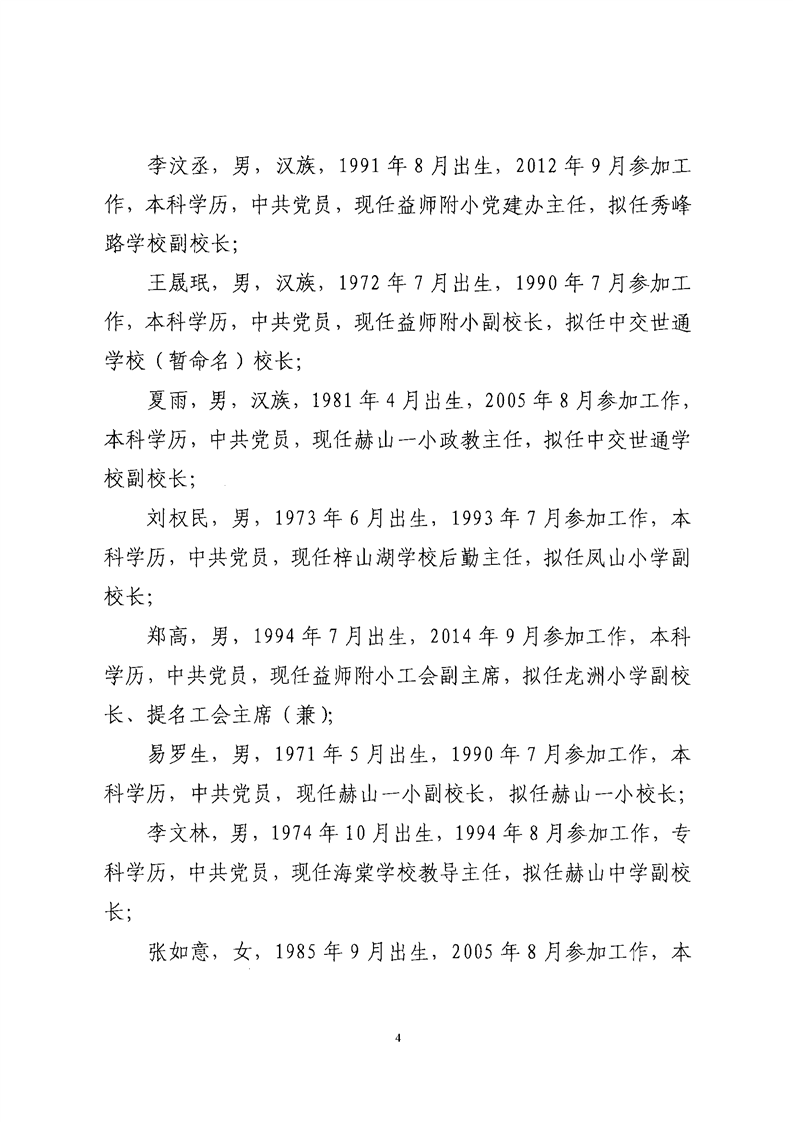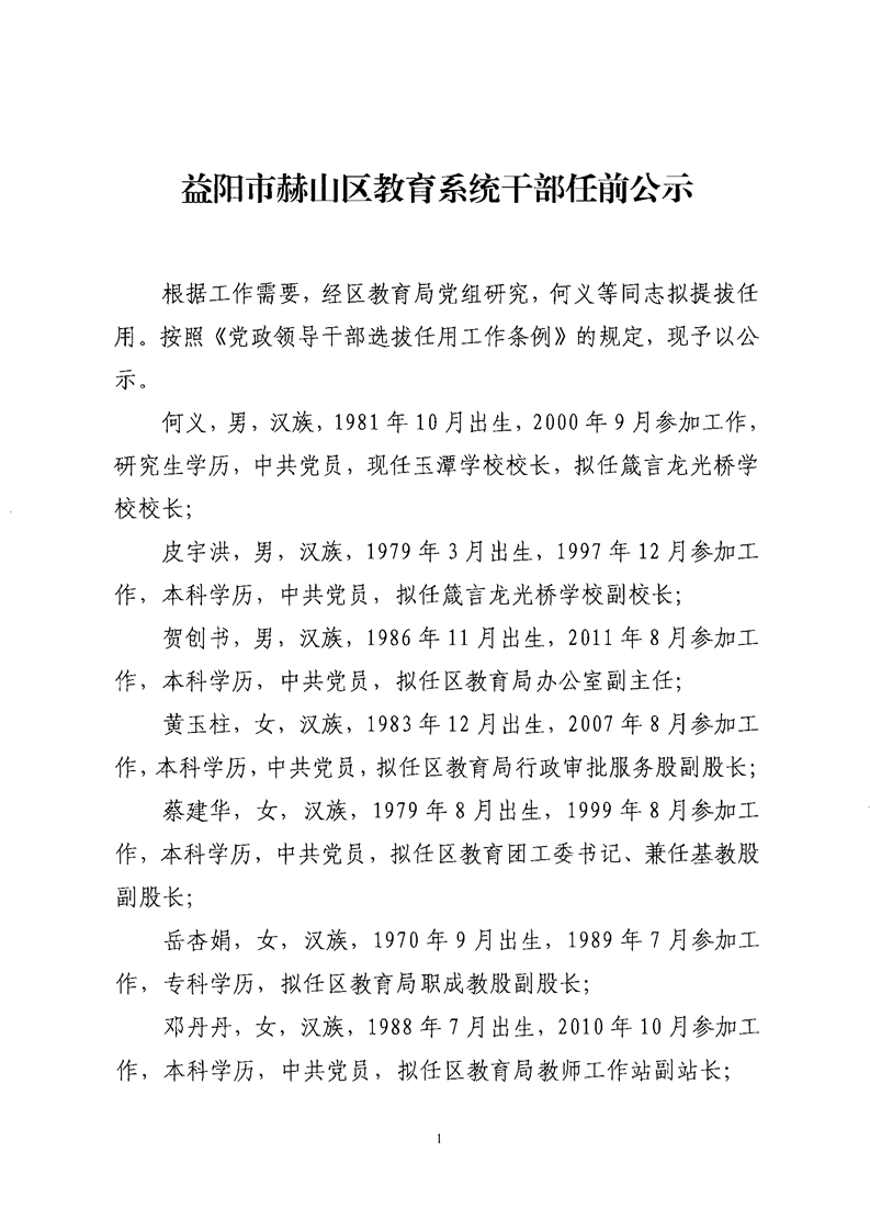 益阳市赫山区教育系统干部任前公示(2021年7月16日)