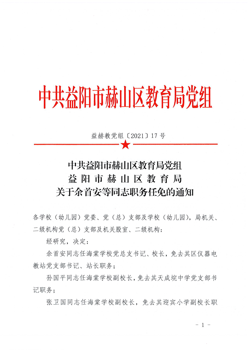 益赫教党组〔2021〕17号关于余首安等同志职务任免的通知