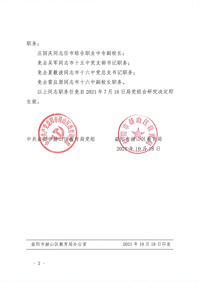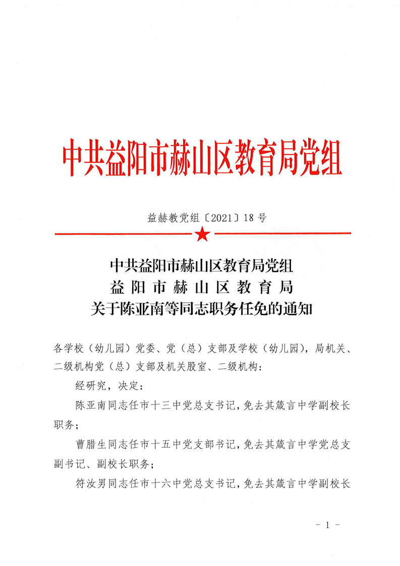 益赫教党组〔2021〕18号关于陈亚南等同志职务任免的通知
