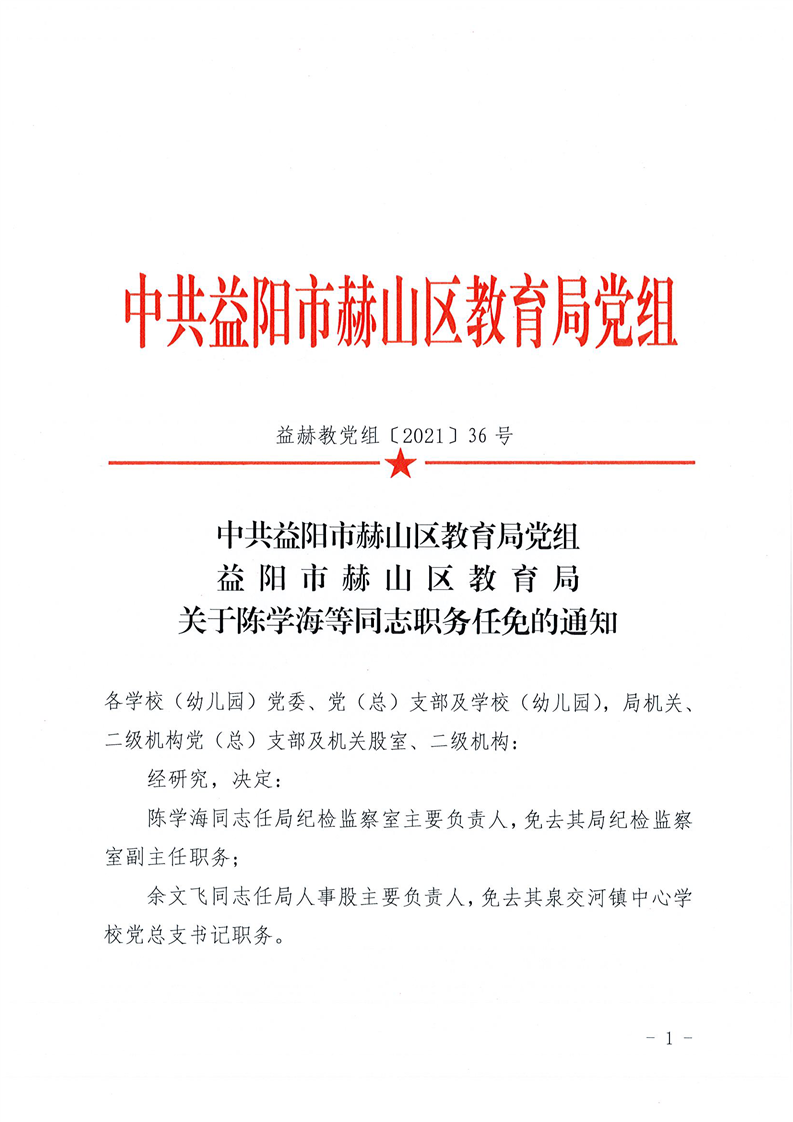 益赫教党组〔2021〕36号关于陈学海等同志职务任免的通知