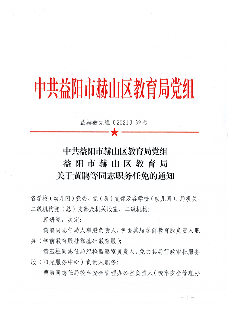 益赫教党组〔2021〕39号关于黄鹃等同志职务任免的通知