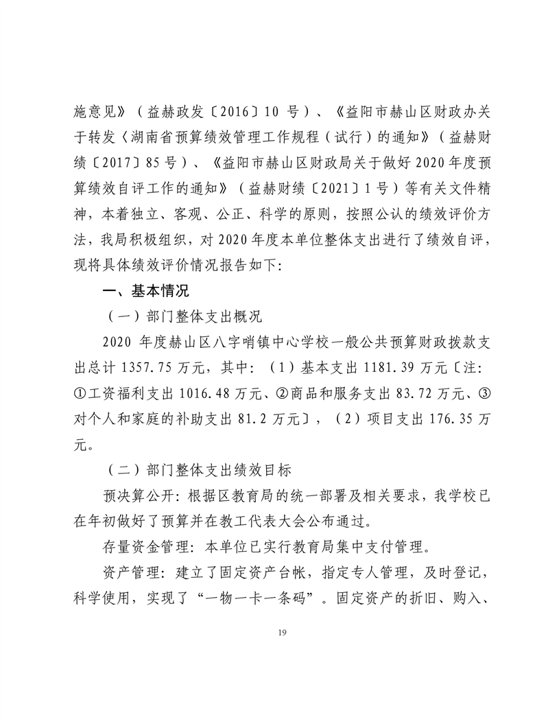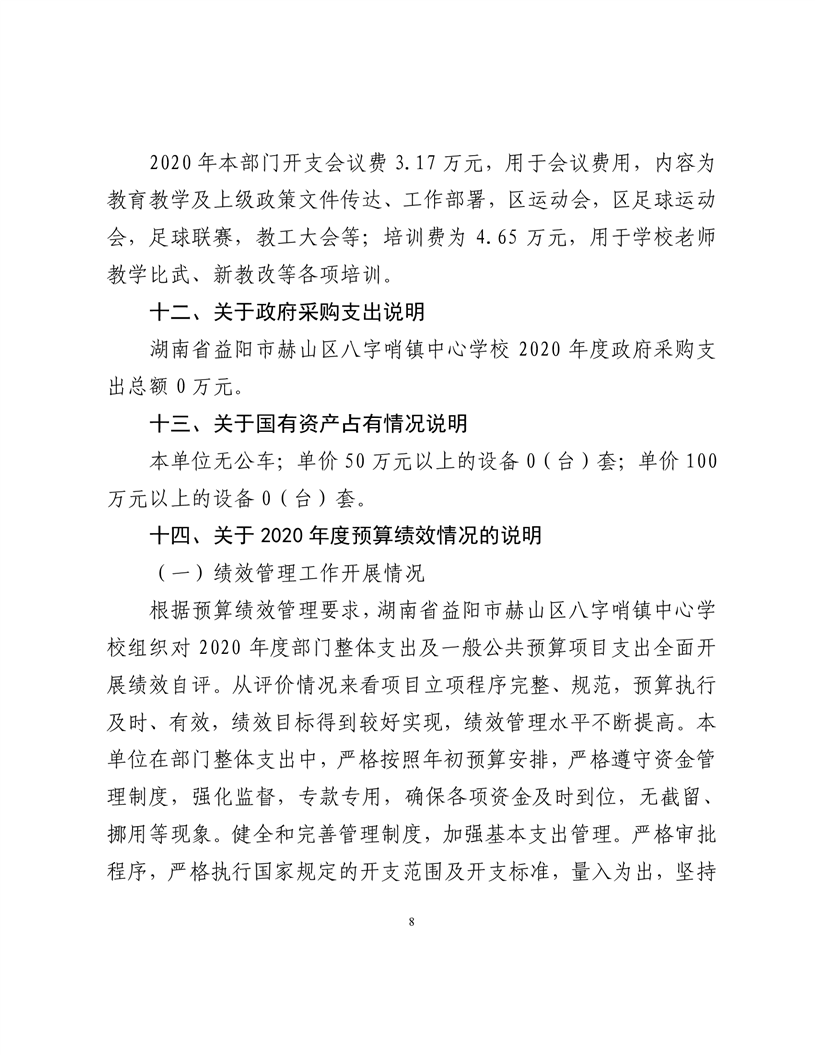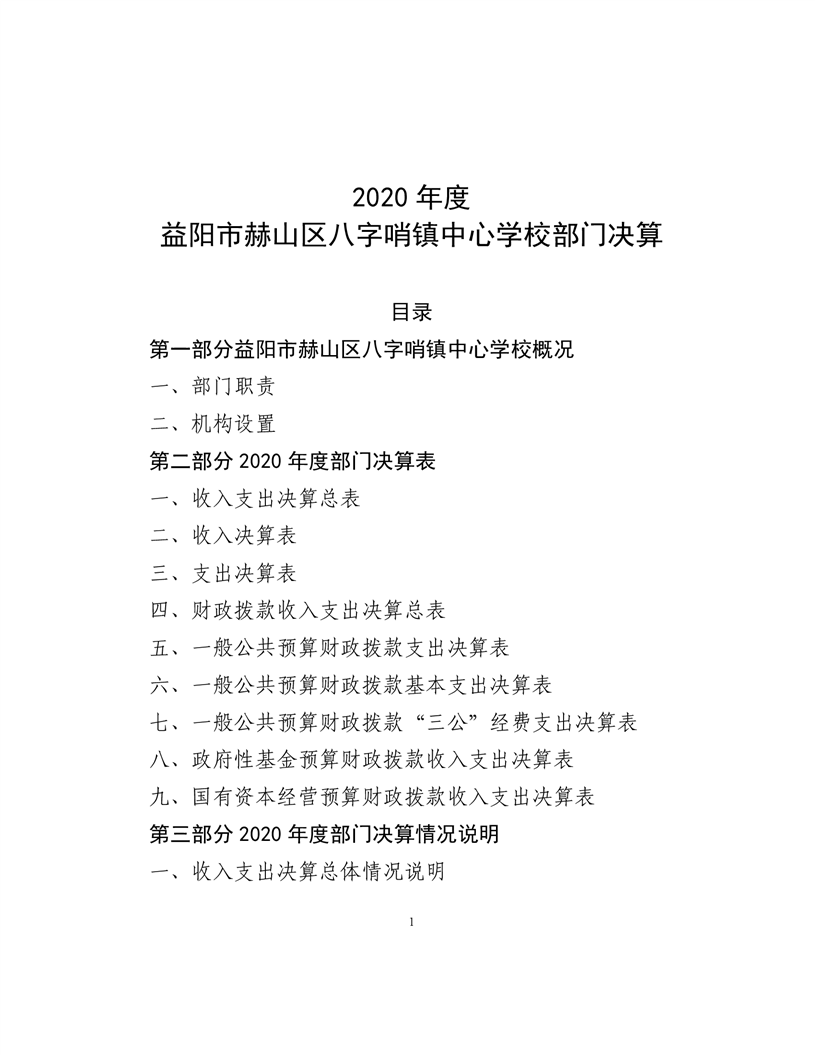 2020年度益阳市赫山区八字哨镇中心学校部门决算
