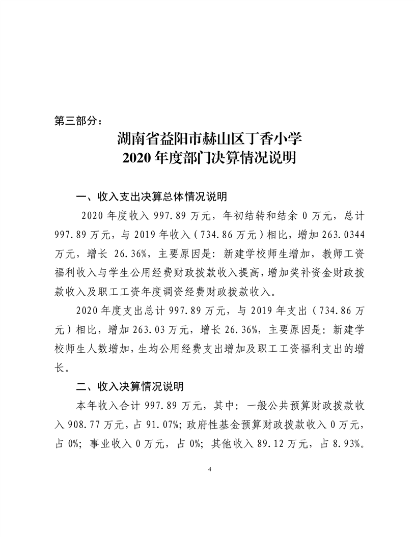 2020年度益阳市赫山区丁香小学部门决算